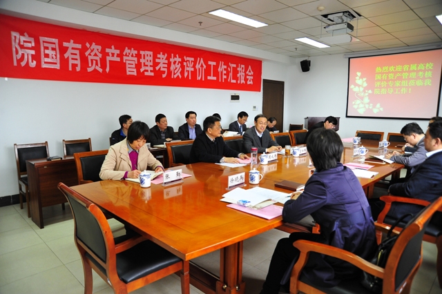 周成平从国有资产管理基本状况、具体做法、自查自评有关情况等四个方面向与会领导专家们汇报了我院国有资产管理的主要工作与成效。