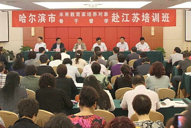 受哈尔滨市教育局和哈尔滨市人民政府教育督导室委托,由江苏省教师培训中心承办的哈尔滨市未来教育家培养对象及骨干督学培训班于5月19日上午在我院举行开班仪式。