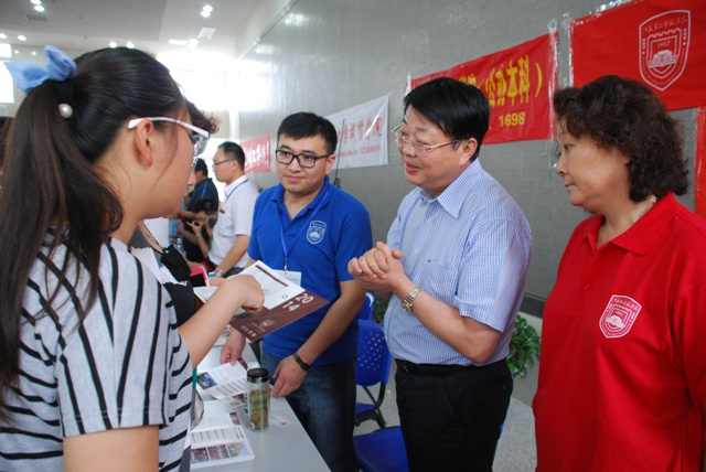 6月22日,由江苏省高校招生就业指导服务中心、江苏省教育考试院联合举办的2014年江苏省普通高校招生咨询会(扬州分会场)在扬州市人力资源市场举行,由此也正式拉开了我校2014年普高本科招生宣传工作的帷幕。党委副书记、副院长程建军在招生就业处处长刘贵友等同志的陪同下亲赴招生咨询会现场,亲切看望参加咨询会的我校招办和生命科学与化学化工学院招生宣传工作人员,对招生宣传工作进行现场指导,并亲自解答家长和考生的疑问。