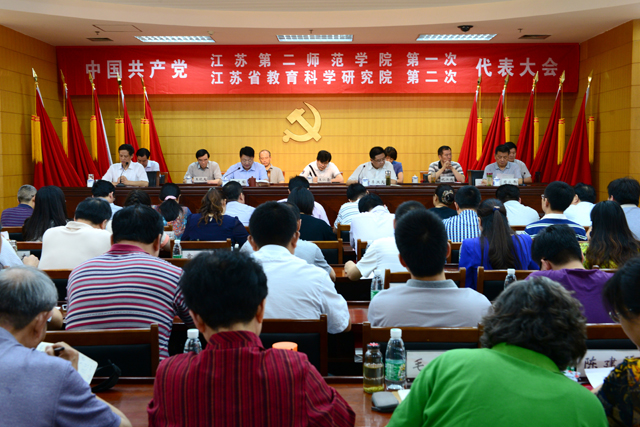 刘青平作中共江苏第二师范学院第一次、江苏省教育科学研究院第二次代表大会关于代表资格审查情况报告和党费收缴使用和管理情况报告。李洪天宣读大会议程,工作人员宣读大会主席团成员名单和大会秘书长人选。
