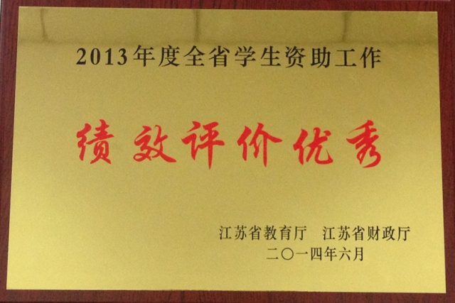 此次评价是由省资助管理中心根据《关于开展2013年度高校学生资助绩效评价工作的通知》(苏教助〔2013〕57号)的相关规定,对全省普通高校实施的绩效评价考核。经专家组评审和省学生资助工作绩效评价领导小组审定,最终确定包括我院在内的58所高校为优秀单位。