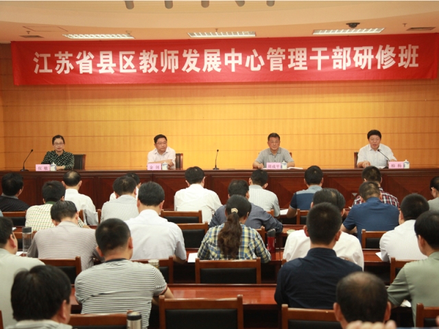 9月27日上午,江苏省县级教师发展中心管理干部专题研修班(第一期)在我院开班。常务副院长、省教师培训中心主任周成平出席开班仪式并讲话。开班仪式由省教师培训中心主任柏杨主持。省教育厅师资处副调研员金剑、省教师培训中心副主任倪敏等出席开班仪式,金剑作首场讲座。