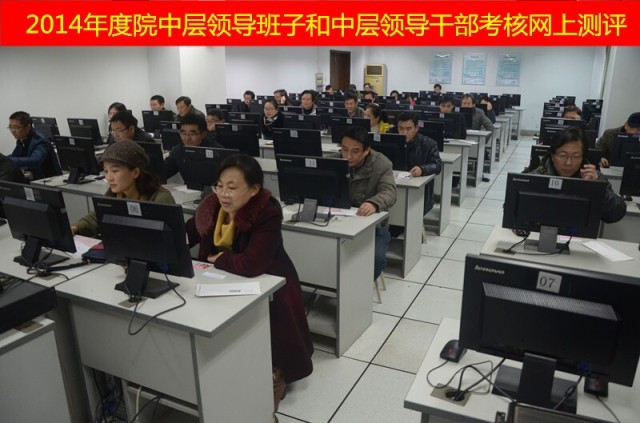 1月14日下午, 2014年度院中层领导班子和中层领导干部网上测评工作在现代教育技术楼机房举行。院领导、全体中层干部、教职工代表共110余人参加测评并分别对全院部门及中层干部个人进行了网上评分。