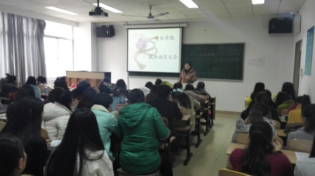 3月2日下午和3月3日上午,音乐学院在草场门校区艺体楼201教室分别召开11普本和13转本班就业动员指导会。会议针对普本和转本班级的不同情况,围绕升学、就业等问题给予了具体指导。音乐学院党总支书记蒋向红、就业专员、各班班主任和2015届全体毕业生参加会议。