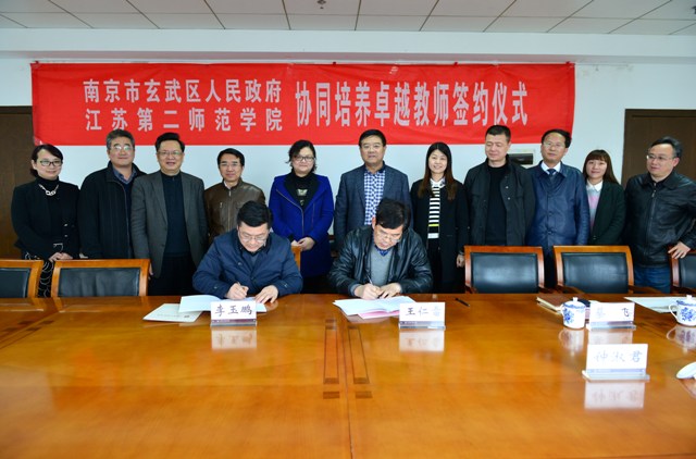 4月9日下午,我院在草场门校区与南京市玄武区人民政府举行协同培养卓越教师签约仪式。院党委书记李洪天、院长王仁雷,玄武区教育局局长李玉鹏、副局长沈峰及双方有关部门负责人参加仪式,仪式由教务处处长蔡飞主持。
