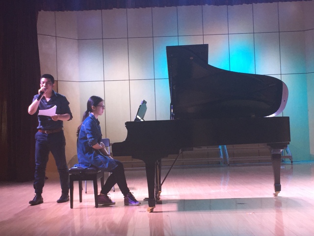 陈霄给大家讲述了关于钢琴表演所需要注意的各种问题:演奏者心理的影响程度,弹奏时不可多想;弹奏力度的重视,重轻要形成对比;身体下盘的支撑(重心)以及曲目指法的练习。他强调,在演奏时需要动脑思考曲目的风格以及情感的表达,在熟练的情况下还要保证肢体的放松并且带有丰富表现力,这样才能将乐曲真正带进观众们的心灵深处,这样才是真正的钢琴演奏。