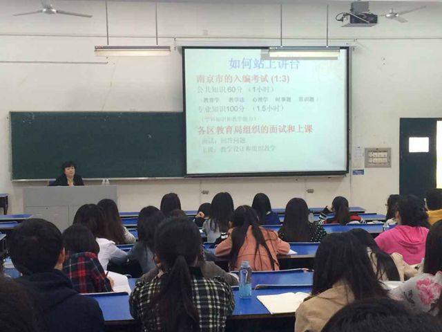 5月6日下午邀请江苏省优秀教研员彭满娣老师为2015届毕业生举行了“如何成为一名合格英语老师”的学术讲座。讲座包含三部分内容:如何走上讲台、如何站好讲台和如何专业化发展。同学们被彭老师丰富的教学和教研一手素材打动。讲座结束后大家与彭老师进行了面对面交流。
