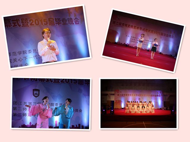 晚会精彩纷呈,气氛热烈。青年团干教师代表为大家带来了精彩的武术、戏曲、器乐风采秀;《古韵·梦》将瑜伽与汉文化完美结合;大艺团音乐队倾情演绎阿卡贝拉《I’m yours》;音乐学院唐韵十足的戏曲《盛世霓裳》、院关工委老教师精心准备的歌曲《在那遥远的地方》将整场晚会的气氛推向了高潮。最后教师代表现场诵读了程建军教授创作的《毕业歌》,祝愿2015届毕业生带着毕业季的花香,带着师长同窗的寄语,踏上新的征程。