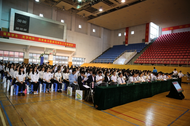 六月的校园,草长莺飞,生机盎然。6月28日下午,在庄严的国歌声中,院第一次学生代表大会在草场门校区体育馆隆重召开。院长王仁雷,院党委副书记、副院长程建军,副院长张勤,院纪委书记刘青平,副院长刘继红、祝兴成、潘文、王家军,各职能部门负责人和各学院教师代表出席大会开幕式。江苏省学生联合会驻会执行主席黄磊应邀出席,本次大会由院学生会主席裴皓洵主持。