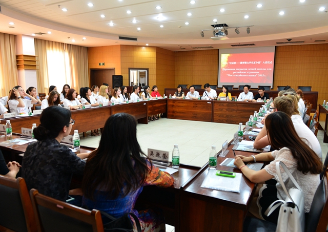 7月1日,2015“汉语桥—俄罗斯大学生夏令营”在我院举行开营仪式。本次活动由国家汉办主办,我院承办,俄罗斯莫斯科州国立大学和我院两校师生共同参与。这次夏令营是我院与莫州大继年初签署合作协议、共建“汉语暨中国研究中心”后,举办的一次重要的交流活动。