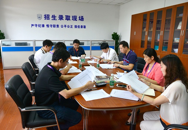 李洪天一行了解网上录取的操作流程,视察录取工作的各个环节,并听取我院2015年普高本科招生录取的最新进展情况汇报。李洪天指出,今年我院扩大招生规模,调整部分招生专业,增加外省招生省份,同时加大招生宣传力度,推进“优质生源基地”建设,吸引了广大优质生源报考,生源质量得到提高,总体招生情况良好。他要求各相关部门加强协调,做好后勤保障,确保我院今年的招生录取工作顺利进行。王仁雷指出,高考招生录取工作涉及到广大考生的切身利益,社会关注度高。他要求全体工作人员尽职尽责,增强责任感,实施招生录取“阳光工程”,切实规范招生程序,认真细化环节管理,不断完善监督机制,做到公平、公正、择优,让考生和家长放心,让社会满意。