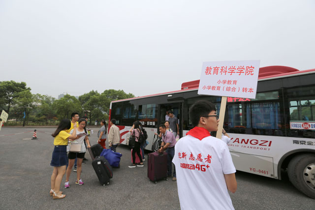 学校统一安排了大客车分赴南京火车站、小红山长途汽车站、长途汽车东站、火车南站迎接新同学。招就处安排了专门老师在接站点负责接站工作。各学院安排专人引导新生,实行"一站式"注册,简化报到流程,缩短注册时间,给予新生及家长们各种贴心的引导和帮助。财务处组织精干力量,缴费工作迅速而准确。学工处为新生们准备了“生活宝典”,给新生提供贴心服务。团委设立学生咨询服务台,组织70多名学生志愿者负责新生接待各项工作。浦口、小行校区管委会做好迎新当日的场地、交通等保障工作。保卫处不仅做好校园内车辆的调度,确保校内交通畅通外,还在校内普及防诈骗知识。后勤管理处在校园内设置多个服务点,并提前做好餐饮、卫生、维修等后勤准备工作。