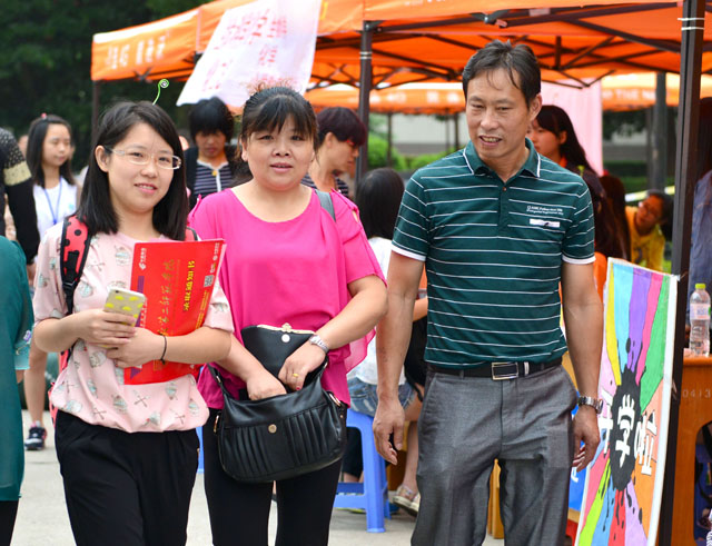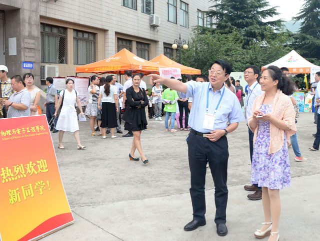 上午,党委书记李洪天,院长王仁雷,校领导程建军、周成平、刘青平、刘继红、祝兴成在相关职能部门负责人的陪同下,分赴三校区新生报到现场,检查指导2015级新生报到工作。校领导一行巡视新生报到的各个环节,亲切问候正在新生接待点和绿色通道办理手续的新生及家长、学生志愿者及学校工作人员。校领导对新生们的到来表示热情欢迎,并与新生及家长愉快交流,询问新生入学手续办理情况,介绍学校专业情况,仔细聆听新生及家长们对报到工作的感受和印象。