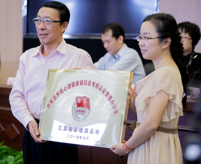 会上,程建军代表我校致欢迎辞,沈一功向我校团委颁发“心理健康辅导员考核认证管理办公室江苏南京培训基地”铜牌。与会领导就心理健康教育在共青团系统的存在及发展分别讲话。