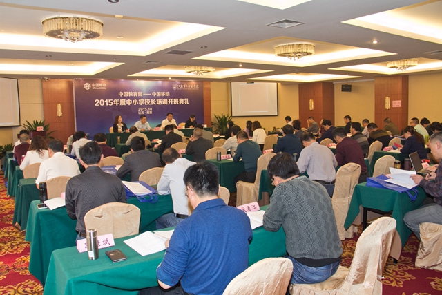 10月16日上午,教育部-中国移动2015中小学校长培训在我校草场门校区百草园宾馆举行开班典礼。校党委书记李洪天、中国移动江苏分公司主任智勇、省教育厅师资处副处长许小梅、江苏教育行政干部培训中心副主任季春梅出席开班典礼,季春梅主持开班典礼。