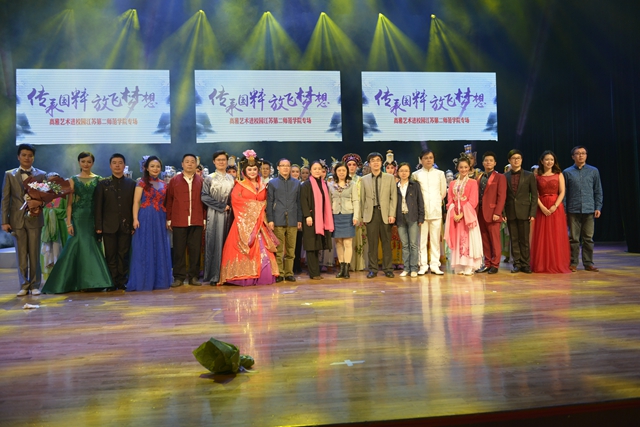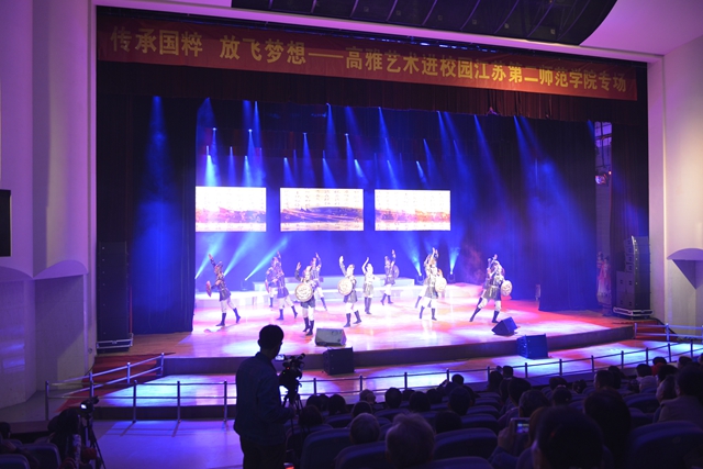10月28日晚,“高雅艺术进校园”活动拓展项目——“传承国粹 放飞梦想”江苏第二师范学院专场演出在南京理工大学学术交流中心隆重举行。我校110余名师生参加此次演出,南京理工大学师生和我校师生共同观看本场演出。江苏省教育厅体卫艺处副处长王红蕾应邀出席本次活动。中央电视台戏曲频道、江苏教育报、中国江苏网等新闻媒体来到现场进行专题采访。中央电视台戏曲频道将在11月6日《戏曲采风》栏目中对本场晚会进行特别报道。