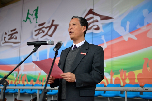 王仁雷致开幕词。他代表校党委、行政向本次运动会的开幕致以热烈的祝贺,向刻苦训练、积极备战的运动员以及全体教练员、裁判员和后勤服务人员致以亲切的问候,向在运动会筹备工作中付出大量劳动、洒下辛勤汗水的同志们表示衷心的感谢。王仁雷说,学校体育既是促进广大青年学生全面发展的有效方式,也是弘扬集体主义和爱国主义精神的必要途径,更是健康中国战略中不可缺少的重要环节。长期以来,我校高度重视开展群众性体育运动,根据“一校三区”办学格局的实际,积极开展丰富多彩的文体活动,培养德智体美全面发展的复合型人才。他希望各位运动员学习并发扬体育健儿“更高、更快、更强”的拼搏精神,赛出水平,赛出风格;希望全体裁判员坚持公平公正的原则,恪尽职守,秉公执法;希望全体工作人员协调配合,认真做好服务保障工作,确保运动会各项工作顺利进行。
