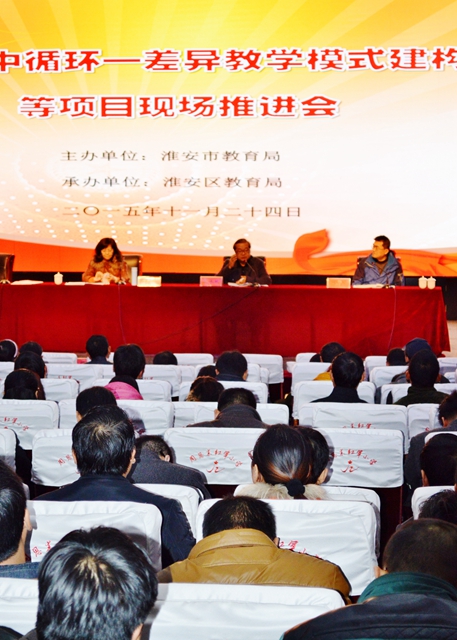 为贯彻落实院党委《关于创建服务型党总支、党支部的通知》(苏师院委组[2015]8号)文件精神和要求,履行江苏省教科院、江苏第二师范学院与淮安市人民政府签订的《教育战略合作框架协议》内容,更好地为淮安市的教育发展做好服务工作,11月24日,副院长王晓天一行十余人赴淮安参加对口帮扶活动。此次活动的主题是“淮安市初中循环—差异教学模式建构与实践等项目的现场推进”。淮安市各县(区)教育局局长、教研室主任、各县(区)小学校长、教师代表等三百余名代表参加此次活动。
