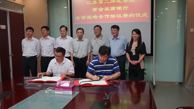 党办、院办主任刘贵友,发展办主任章跃一、财务处处长张红以及紫金农商银行全体领导班子成员和相关部门负责同志参加签约仪式。