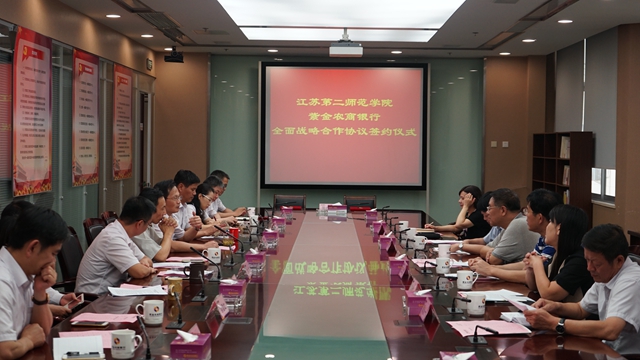 9月19日下午,我校党委书记李洪天一行赴紫金农商银行考察交流并签订战略合作框架协议。党委副书记、院长王仁雷,党委副书记、副院长程建军,副院长刘继红,江苏省农村信用社联合社副主任韩后军,紫金农商银行党委副书记王留平等共同出席签约仪式。仪式由紫金农商银行行长汤宇主持。