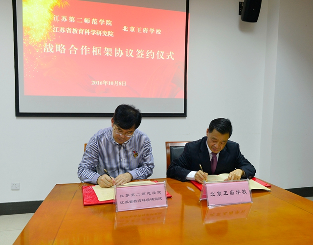 王广发介绍了该校办学历程和发展概况,并表达了两校合作的愿景和愿望。他说,两校领导通过相互了解,达成了共识,今天签约,走向合作。江苏第二师范学院是培养人类灵魂工程师的名校,北京王府学校将国际优质教育资源引进合作首选江苏第二师范学院,其意义不言而喻。打造更高端的教师、校长培训,实现教师培养走向国际化,提升江苏教育国际化水平,是我们共同的愿望和目标。我坚信,我们的选择是正确的,两校的合作也必将产生丰硕的成果。