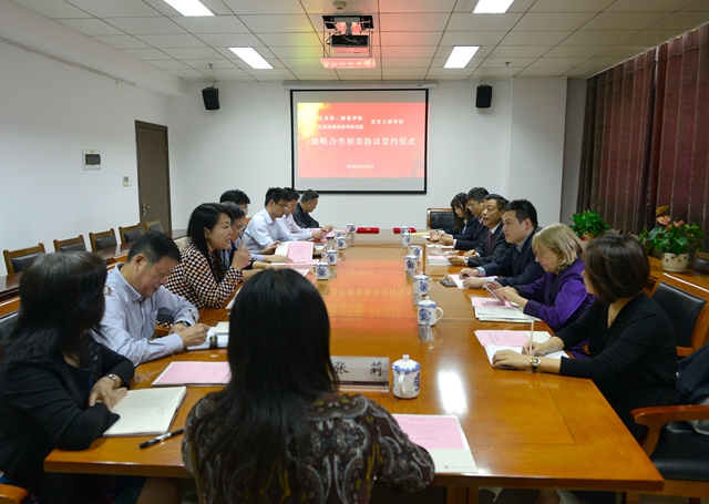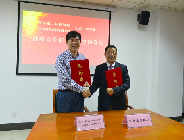 王仁雷与王广发分别代表双方签署了《战略合作框架协议》。党办、院办、分院办主任刘贵友,发展办主任章跃一,省干训、师训常务副主任严华银,国际合作与交流处处长周韵,信息化办公室主任杨剑,外国语学院党总支书记、副院长张莉和北京王府学校相关部门负责同志参加签约仪式。