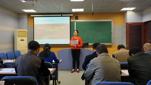 4月12日下午,我校在草场门校区召开2017年度省级三好学生、优秀学生干部、先进班集体校内评审会。校学生工作指导委员会委员担任评审会评委。会议由学工处处长刘莹主持。