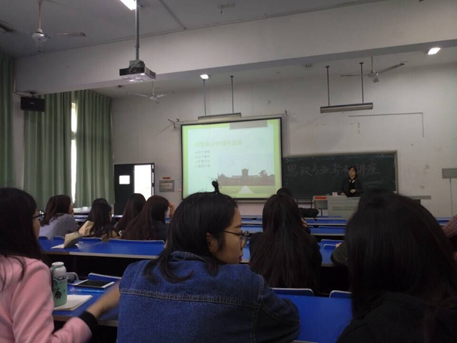 思政专业考研讲座由董金平副教授、段冰副教授主讲。董金平从学校选择、专业选择、学习场所等方面介绍了考研的准备过程。段冰给非师范同学详细介绍了各学校的可考专业和选择学校的各项因素,介绍了司法考试、书记员考试以及公务员考试的一些情况,并提供了一些备考方案。