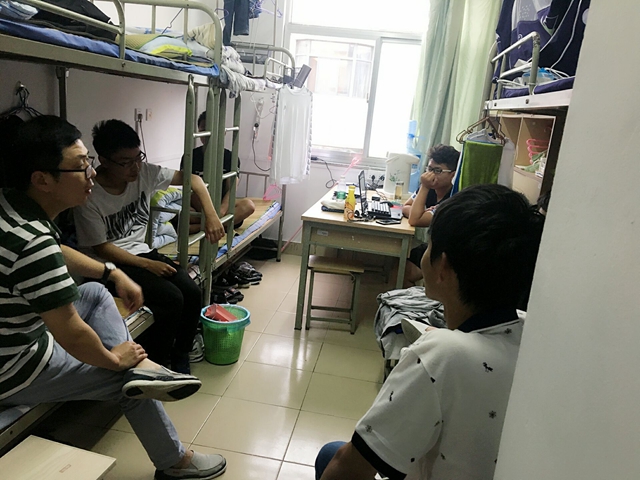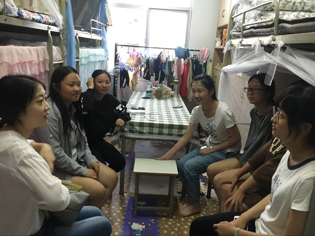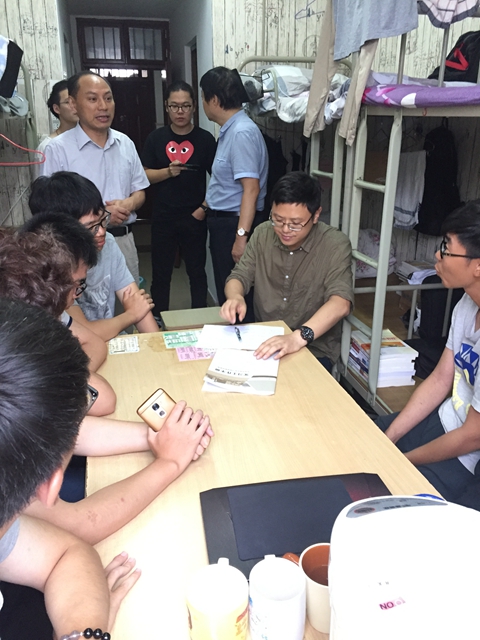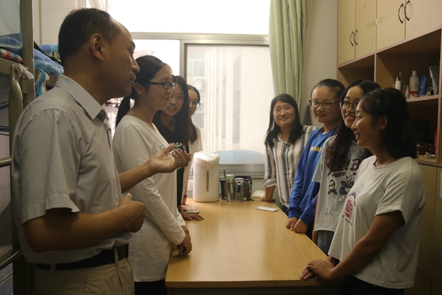 高荣国、庞爱中以及其他宿舍家长们走进宿舍,与自己的“孩子”们亲切聊家常,了解每一位学生的性格特点和未来志愿,结合本专业的学习和未来发展前景帮助学生制定个人学习计划和职业规划方向,并向每一位新生提出殷切希望。