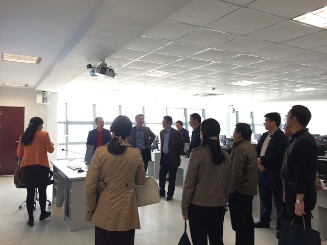 潘文、徐国华一行还实地考察了浦江学院信息中心、教学楼、学生宿舍、食堂等场所,认真听取了浦江学院关于智慧校园建设和教室设备建设与管理方面的介绍。