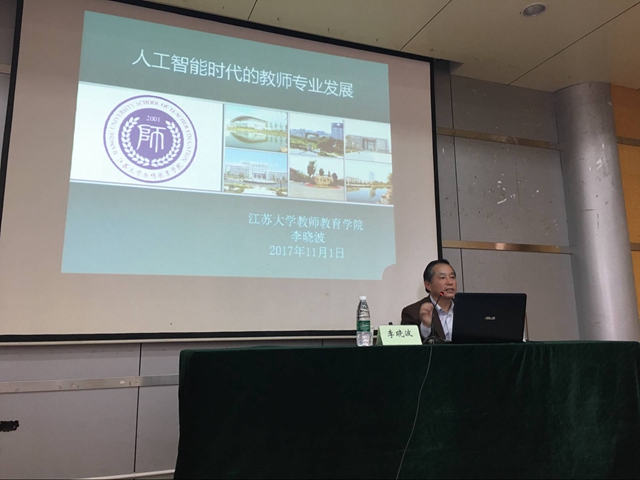 11月1日下午,马院在浦口校区302报告厅举行题为“人工智能时代的教师教育发展”的讲座,江苏大学教师教育学院教授李晓波应邀主讲。全体2017级学生聆听讲座。