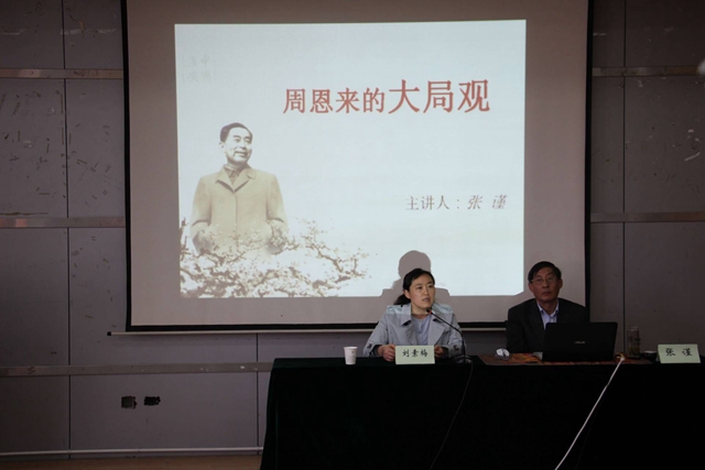 11月8日下午,马克思主义学院主办石城讲坛之学术系列专题讲座——《周恩来的大局观》,全国周恩来思想生平研究会副会长、周恩来纪念地管理局局长张谨应邀主讲,马院院长刘素梅主持,近150名同学参加。