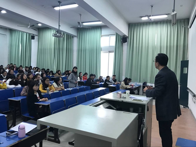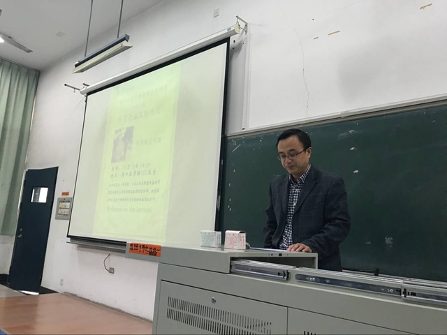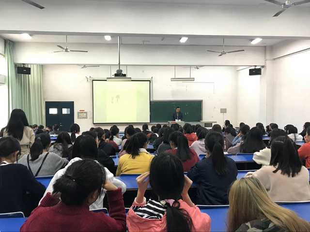 11月15日,外国语学院在浦口校区教学楼102教室举办“外贸行业风险防控”学术讲座,江苏汇鸿集团畜产嘉羽贸易股份有限公司总经理吴勇超应邀主讲,商务教研室全体教师和全院商务英语专业学生聆听讲座。讲座由商务英语教研室教师廖文萌主持。