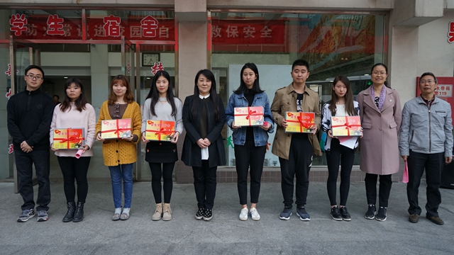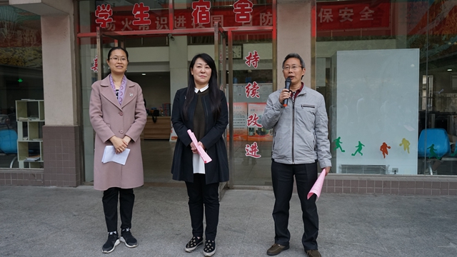 刘继红为各学院授予“党员示范宿舍”标示牌,并带领参加仪式的部门负责人、辅导员及学生党员代表走进学生宿舍,为党员示范宿舍挂牌。