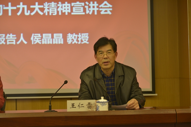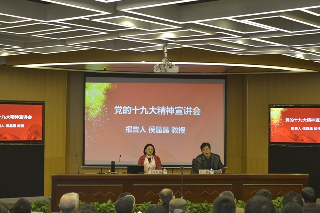 11月24日下午,我校在草场门校区举行党的十九大精神宣讲报告会。省委宣讲团成员,党的十九大代表,南京师范大学教科院教授、博士生导师侯晶晶来校作宣讲报告。党委书记王仁雷,校长王建,校领导王国强、祝兴成、潘文、王晓天、姚振标、徐国华出席会议。全体科级以上干部、老同志代表、民主党派代表、教师代表和学生代表400余人参加会议。王仁雷主持会议。