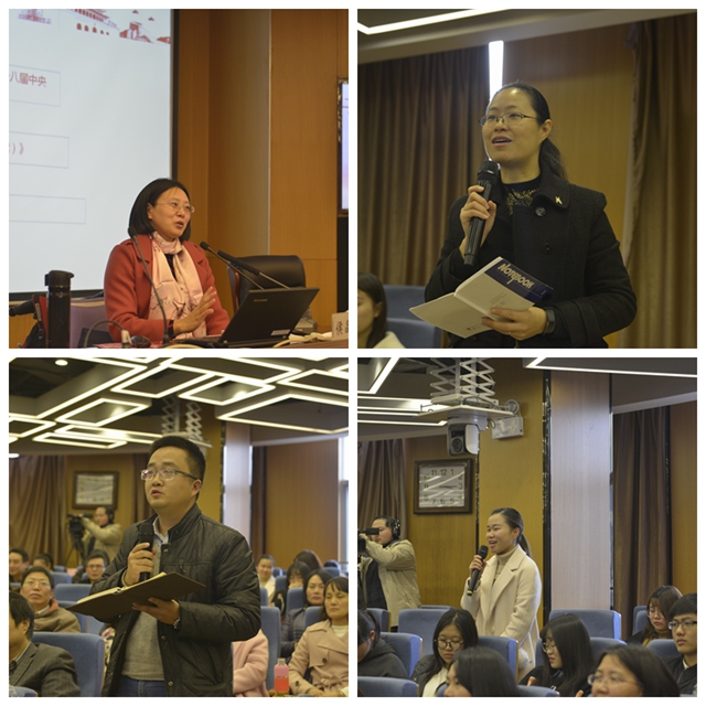 师生代表就新时代教师使命担当等话题,与侯晶晶进行了充分交流,大家踊跃发言,收到了良好的学习效果。大家纷纷表示:报告内涵深刻、要点突出,既有政治的高度、理论的深度,也有实践的广度,特别是侯晶晶教授参加十九大的亲身经历,给大家上了一堂极具教育意义的“党课”和“思政课”,为每个人注入了信仰的力量、真理的力量、自信的力量和实践的力量。