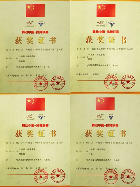 11月25日,2017年福摩杯“舞动中国—排舞联赛”总决赛在杭州举行。来自全国14个省42个市的100余支队伍,近1500名运动员参加比赛。在四十多所高校、109名运动员参加的高校普通院校组单人比赛中,我校最终获得中级单人规定项目第一名、初级单人规定项目第四名、高级单人规定项目第九名和第十名的好成绩。同时,我校排舞队教练蓝晓萍老师从全国14个省42个市64名教练员中脱颖而出,被评为“2017年福摩杯‘舞动中国—排舞联赛’总决赛十佳排舞教练”。