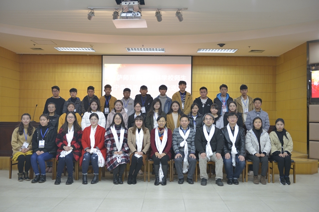 拉萨师专学生向我校参会领导和老师们敬献了哈达,与会人员合影留念。