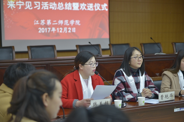 徐新萍对我校师范生人才培养,特别是教师技能培养情况作详细介绍,对见习生的表现予以肯定,对见习活动取得圆满成功表示祝贺,并祝愿见习学生在以后的生活、学习和工作中展开双翼,飞得更高、看得更远。