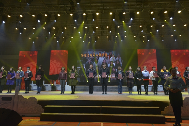 晚会期间,校领导为校优秀班集体以及受共青团中央、团省委嘉奖的学院颁奖,为我校优质生源基地授牌。