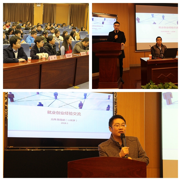 会上,元伟和陈陆斌与同学们分享了自己在校期间的学习经历和毕业后的创业经历,回顾了创业中遇到的机遇、挑战和困难,从自身经历出发,鼓励大家在校期间除了学好专业知识、提高文化素养外,还要培养语言表达、与人沟通的能力,提升这些创业就业道路上的重要素养。