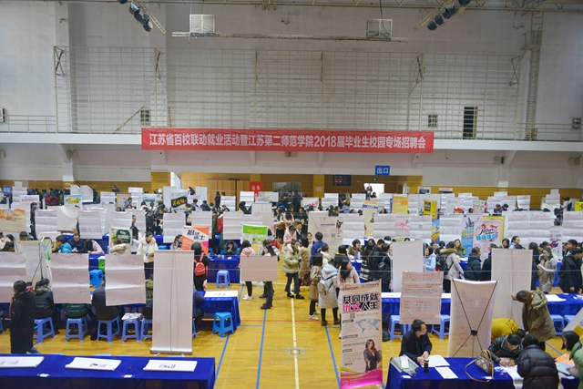 为进一步加强人才市场建设,搭建就业平台,更好地为毕业生就业提供服务,1月6日上午,我校在草场门校区体育馆举办“江苏省百校联动就业活动暨江苏第二师范学院2018届毕业生招聘会”。党委书记王仁雷、校长王建、副校长刘继红到现场指导工作。