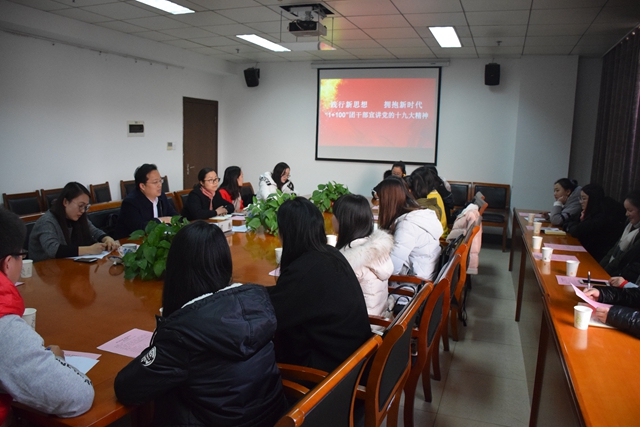 为进一步推动广大团员青年认真学习宣传贯彻党的十九大精神,深入了解我校团员青年发展现状,切实将贯彻落实党的十九大精神与“1+100”团干部直接联系青年活动相结合,1月8日下午,团省委副书记司勇一行来我校开展“1+100”团干部宣讲党的十九大精神活动,和我校20名优秀团员青年代表交流心得,分享体会。校团委副书记刘姝主持宣讲会。