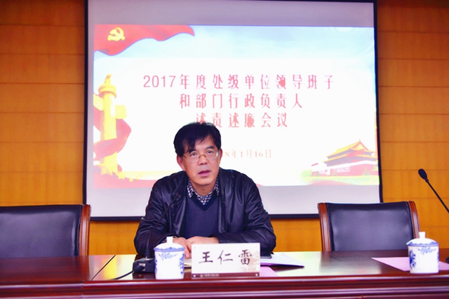 王仁雷作会议总结。他指出,此次述责述廉会议既是我院学习贯彻十九大精神的重要举措,更是进一步抓好党风廉政建设工作、层层传递压力,在全院形成风清气正、崇廉尚实的良好氛围的重要抓手。在全面从严治党的大背景下,他对我院2018年的党风廉政建设工作提出三点要求:一是强化思想认识。要把“全面从严治党”,“纠正‘四风’不能止步,作风建设永远在路上”等重要指示精神贯穿我院全年工作,要提升政治站位,增强政治意识,更加坚定地维护习近平总书记的领袖和核心地位;二是严格遵守制度。切实落实好党规党纪、《准则》和《条例》、锲而不舍落实中央八项规定精神和《实施细则》要求,带头弘扬清风正气,带动优良校风教风学风建设。三是坚持一岗双责。要把全面从严治党作为应尽之责、分内之事,坚持党建工作和中心工作一起谋划、一起部署,确保落实主体责任常态化、长效化。各单位、部门负责人要以本次述责述廉为新的起点,以习近平新时代中国特色社会主义思想为指导,继续深入学习贯彻十九大精神,切实增强“四个意识”,在思想和行动上与党中央保持高度一致,在新的起点上扎实推进党风廉政建设和反腐倡廉工作,为我院事业科学健康发展提供有力保障。