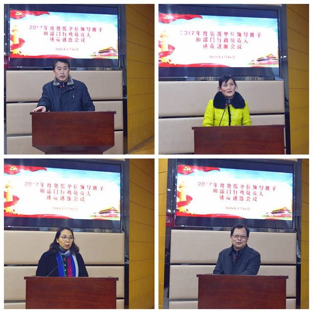 为深入贯彻落实党的十九大精神,切实履行处级单位领导班子和部门行政负责人的党风廉政建设主体责任,1月16日下午,我院在草场门校区召开2017年度处级单位领导班子和部门行政负责人述责述廉会议,全面客观、公正准确地考核部门领导班子和部门行政负责人的政治业务素质和履责情况。