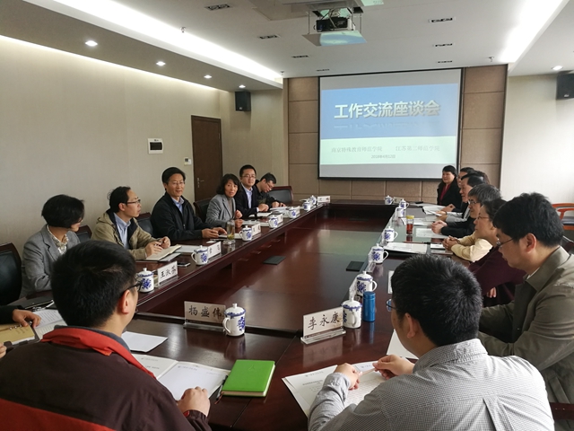 4月12日上午,南京特殊教育师范学院副校长姜玉泉、谭忠率人事处、科研处有关同志来我校调研交流。校长王建、副校长张勤,科研处处长章飞、副处长王淑芬,人事处副处长顾晔峰等参加交流。张勤主持交流会。