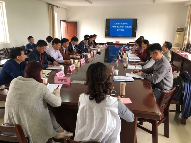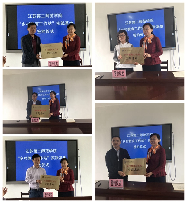 会上举行了签约授牌仪式。我校与宜兴市教师发展中心、宜兴市外国语学校、实验小学、第二实验小学和实验幼儿园等签署“乡村教育工作站”共建实践基地协议并授牌。