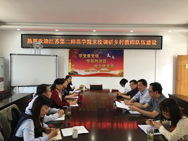 5月8日,我校教务处处长徐新萍、副处长陈蓓、教育科学学院党总支书记王玲玲、美术学院副院长陶金鸿、教务处综合科科长辛宪军及定向班班主任徐田等一行6人赴宜兴市教育局,开展乡村教师定向培养工作调研。江苏大学教师教育学院原院长李晓波、教师陆道坤及2名研究生参加调研。