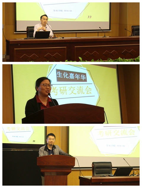 5月9日、11日下午,生化学院分别举办化学和生物两场考研经验专题交流会。该院于5月中旬组织开展了“考研交流周”活动。院长蒋功成、党总支书记陈建琴、副院长花书贵,全体辅导员以及有意向考研的同学参加了此项活动。