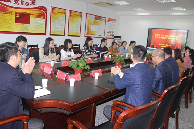 在苏州科技大学外国语学院的调研会上,祝平详细介绍了该院的发展历程、课程设置、教师发展、学科特色、大学英语教学改革等方面情况。我院各专业负责人就教学改革、课程建设、人才培养方案修订等问题与对方专业负责人进行了细致讨论。双方达成了资源共享、共同发展共识。